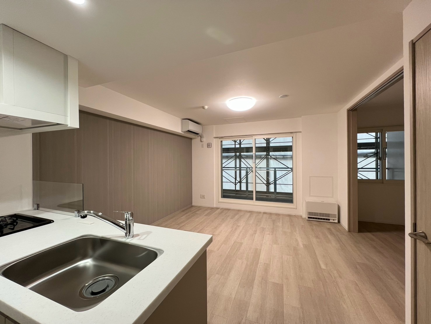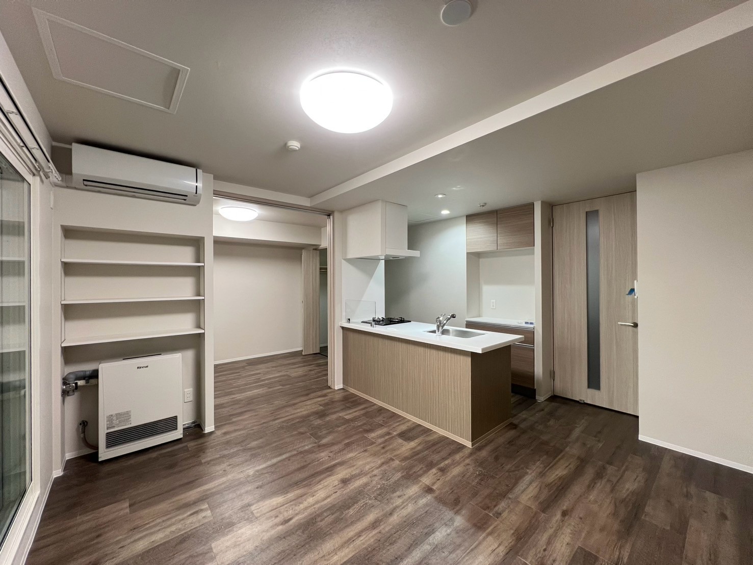 1LDK:ガス給湯器(追炊き無)、都市ガスFFストーブ1基