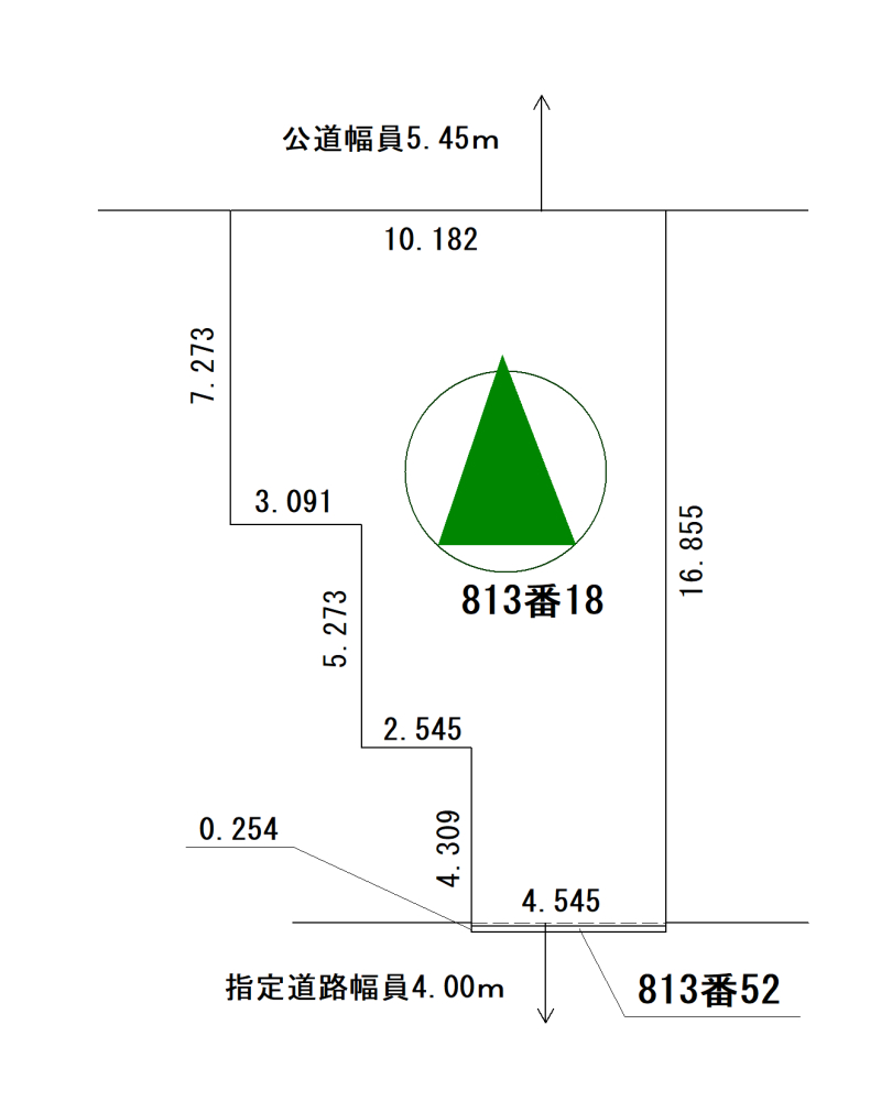 接道状況 | 2方向・北側公道幅員5.45mに10.182m接道・南側指定道路幅員4mに4.545m接道 | ||