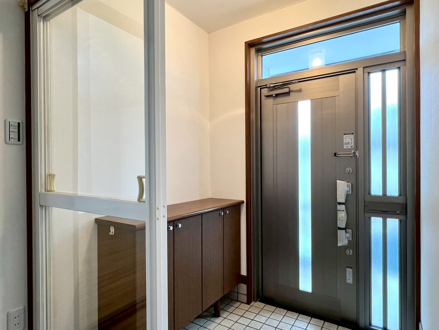 玄関扉交換・玄関下駄箱扉調整補修